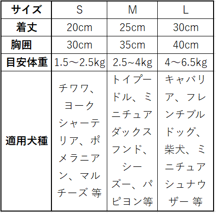 ※ワンちゃんが立っている状態で計ってください。デザインによりサイズが異なる場合があります。