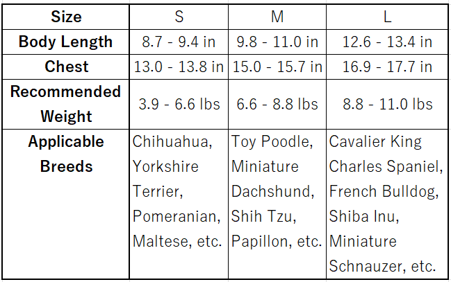 ※ワンちゃんが立っている状態で計ってください。デザインによりサイズが異なる場合があります。
