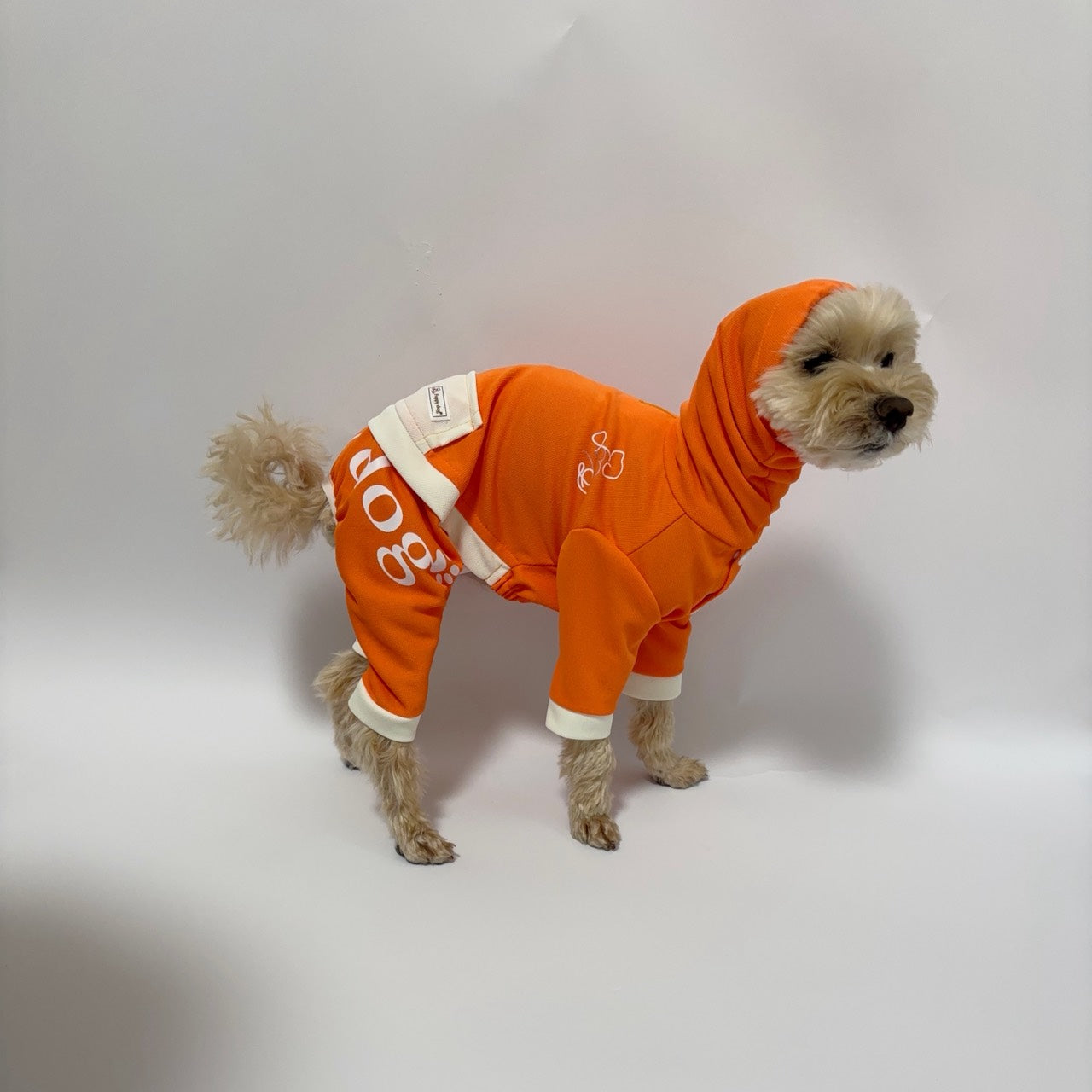 露出する部分を可能な限りカバーするため、袖丈は長めの仕様となっております。本商品は獣医師より推奨いただいています。袖丈は調整も可能ですので、短めをご希望の方はLINEにてご相談下さい。