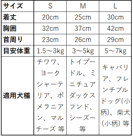 ※ワンちゃんが立っている状態で計ってください。デザインによりサイズが異なる場合があります。