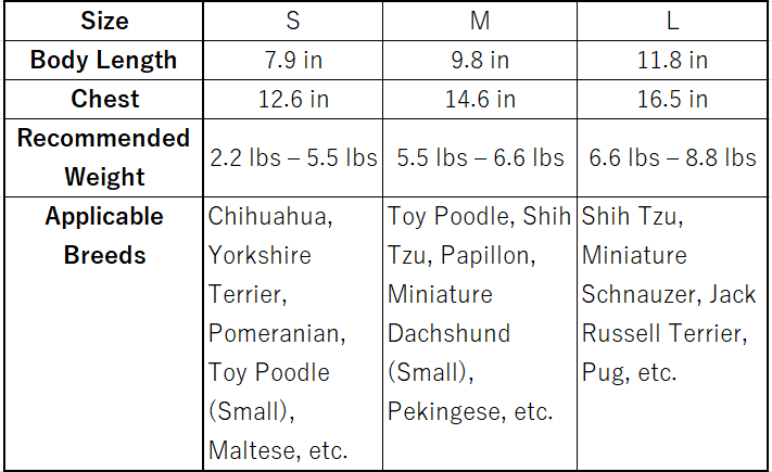 ※ワンちゃんが立っている状態で計ってください。デザインによりサイズが異なる場合があります。