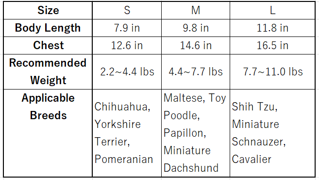 ※ワンちゃんが立っている状態で計ってください。デザインによりサイズが異なる場合があります。